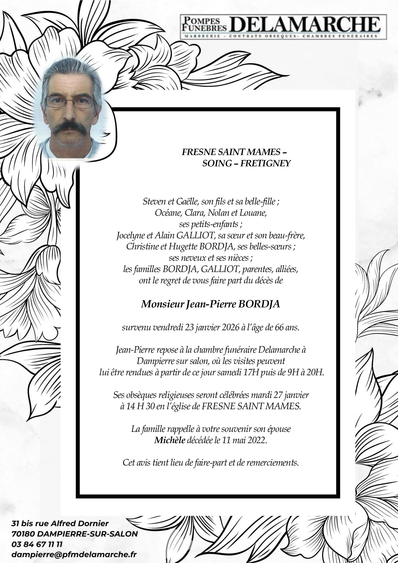 C’est avec une grande tristesse que nous vous annonçons le décès de Jean-Pierre BORDJA survenu le vendredi 23 janvier 2026 à Besancon.
